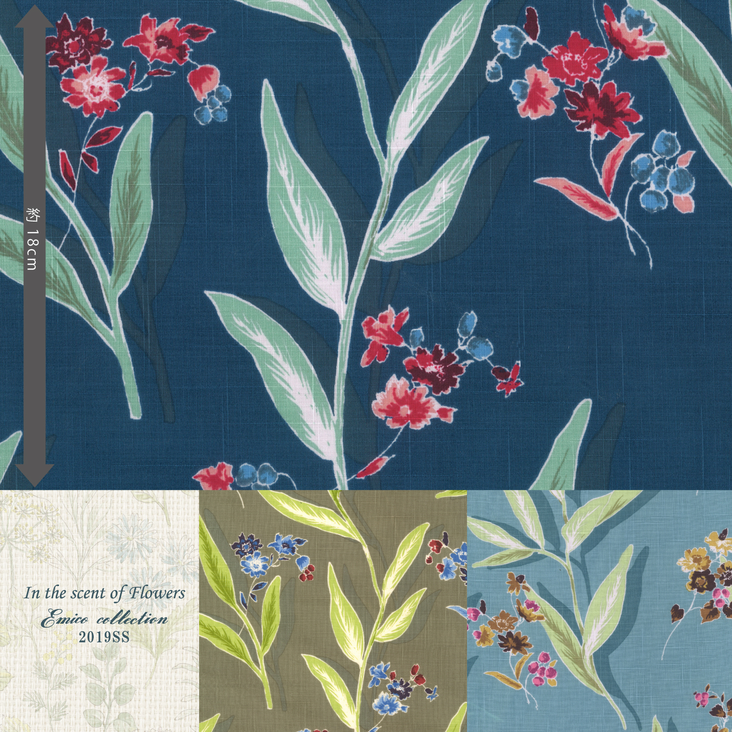 花の香りからイメージした様々な花のモチーフで彩る、大人の女性に似合うファブリックの提案になります。