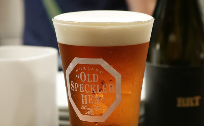 僕が「Old Speckled Hen」に出会ったのは、日本で僕が1番好きなビアバー東京・三軒茶屋にある「Pigalle Tokyo(ピガール)というお店です。内装やコンセプトがあまりに衝撃的で「こんな店が世の中にあるんだ」ってくらい素敵な店だと思います。その店のメニューの1番が「Old Speckled Hen」。初めて飲んで「こんなに美味しいビールがあるんだ」ってそれも衝撃的でした。僕自身クラフトビール業界は長いけど、IPA(アイピーエー)という、フルーティーで苦味の強いビールやWeizen(ヴァイツェン)のような派手なビールが最近主流のスタイルです。「Old Speckled Hen」は、ドイツビールみたいなクラシックなモルトで、麦芽の旨みが前面に出て、ホップはそれを下支えするくらい。はっきり言うと地味なスタイルだけど飲み口は紅茶みたいで炭酸が強くないから、お茶のようにスルスル飲めておなかも膨れないし、食事の邪魔をしないです。永遠に飲めるから、イギリスの人たちはこういうビールを楽しんでいるんじゃないかな。