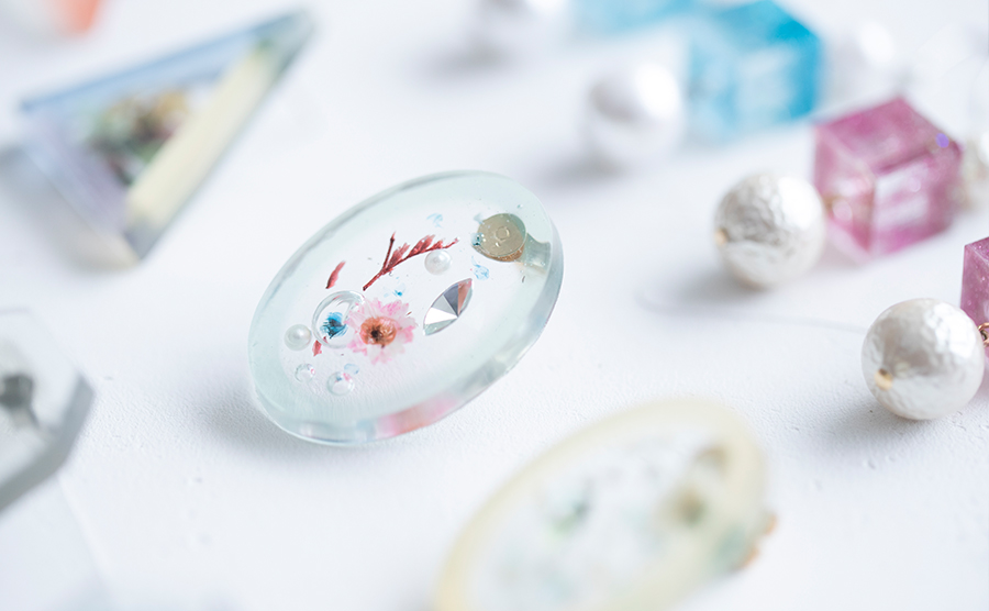 好きな色・形・大きさのパーツを、初心者でも簡単に作れるのがレジンの魅力。