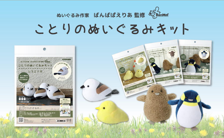 ばんばぱえりあさん監修の第1弾「ことりのぬいぐるみキット」は、「シマエナガ」「ひよこ」「ペンギン」「子ペンギン」の4種類。