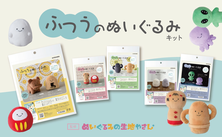 「おばあちゃんちの置物セット」や「はにわセット」など、ちょっとシュールな世界観のぬいぐるみ作りが楽しめます。