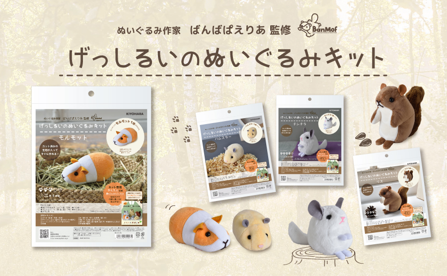 動物モチーフのぬいぐるみ作りにも興味がある方は、人気ぬいぐるみ作家ばんばぱえりあさん監修「げっしるいのぬいぐるみキット」の制作風景をこちらで掲載しています。