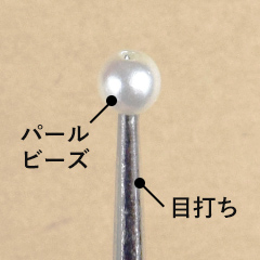 目打ちのような先が細い棒をパールビーズの穴に刺します。