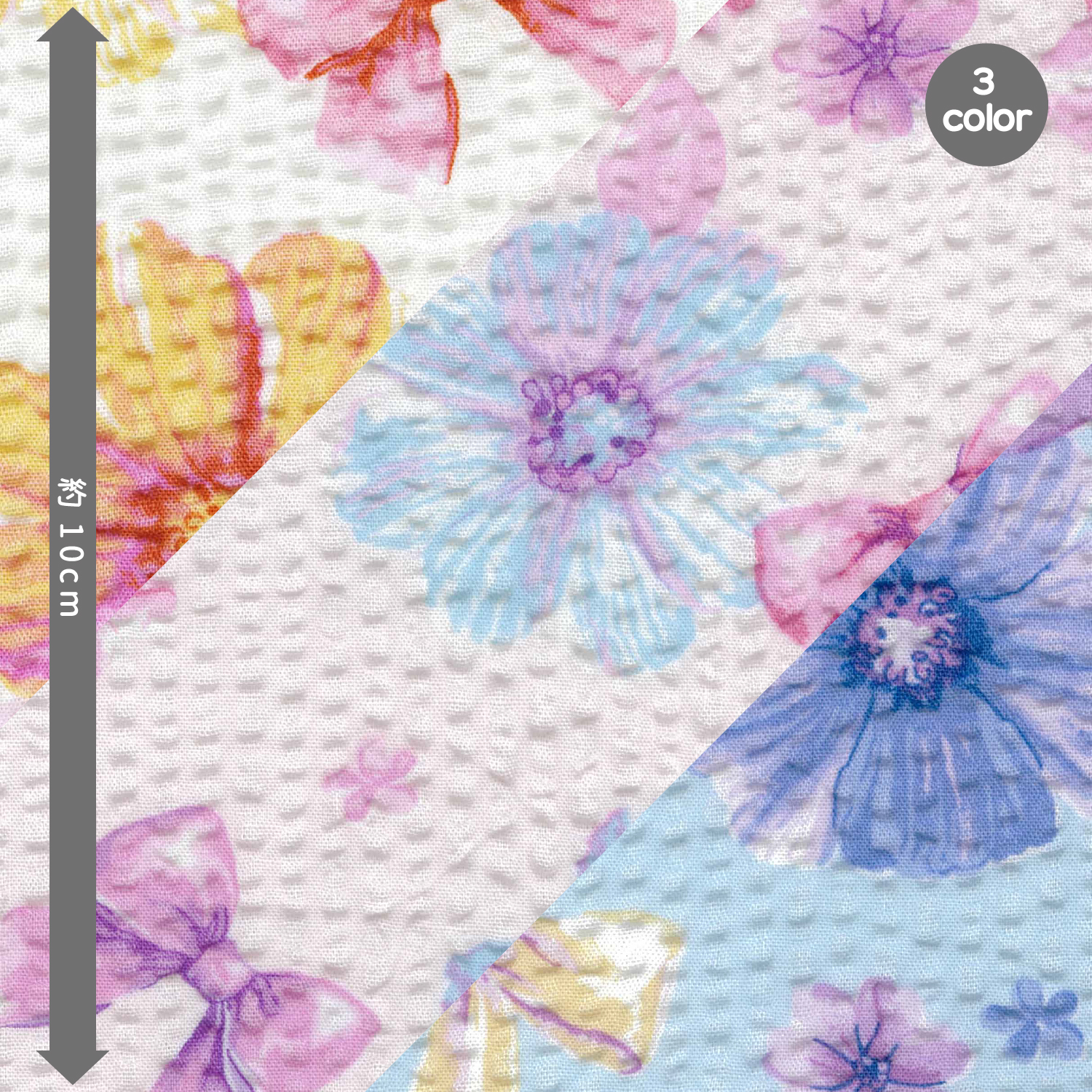 キュートなお花とリボンを散りばめた柄です。