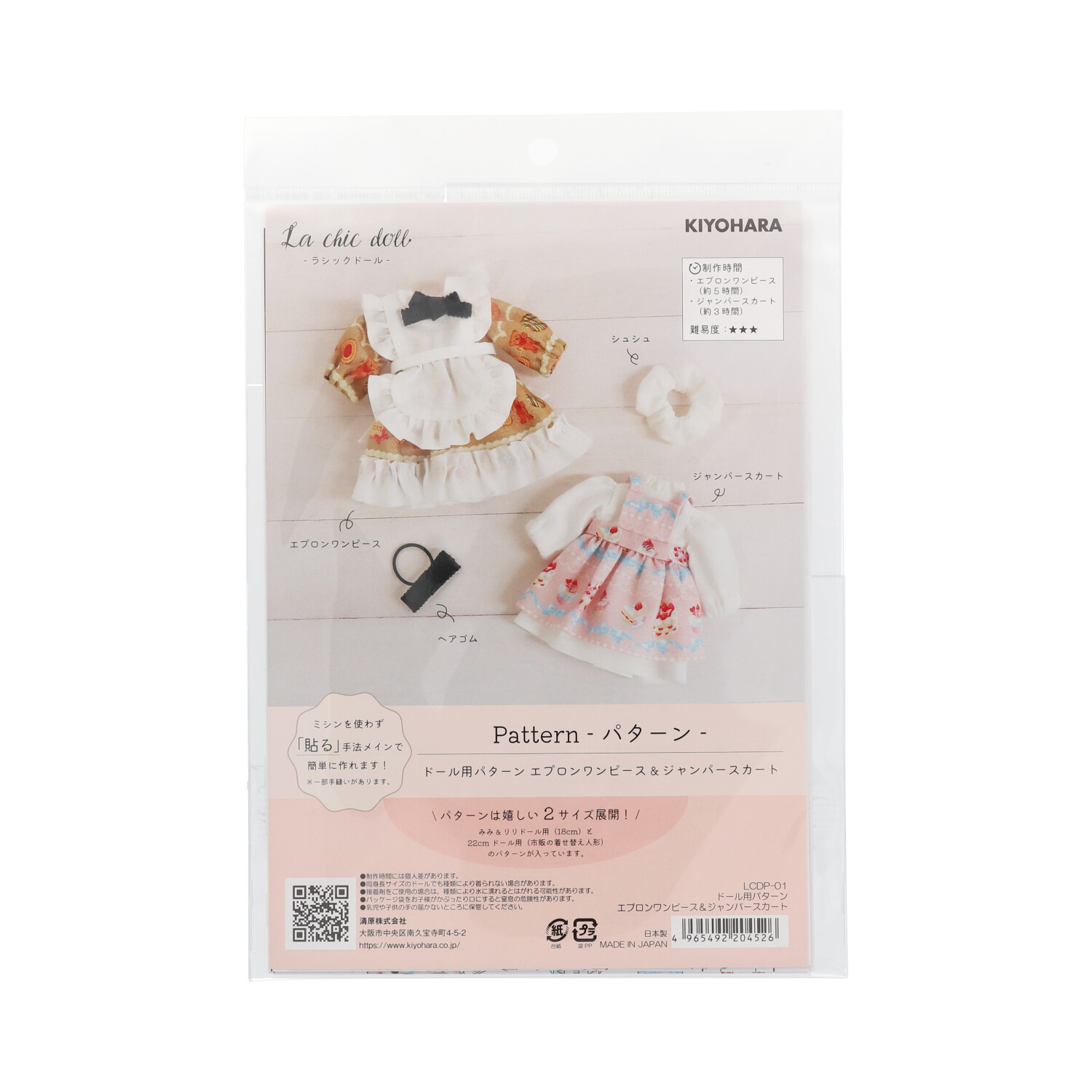 ※みみ&りりドール用(18cm)、22cmドール用(市販の着せ替え人形)の2サイズのパターンが入っています。