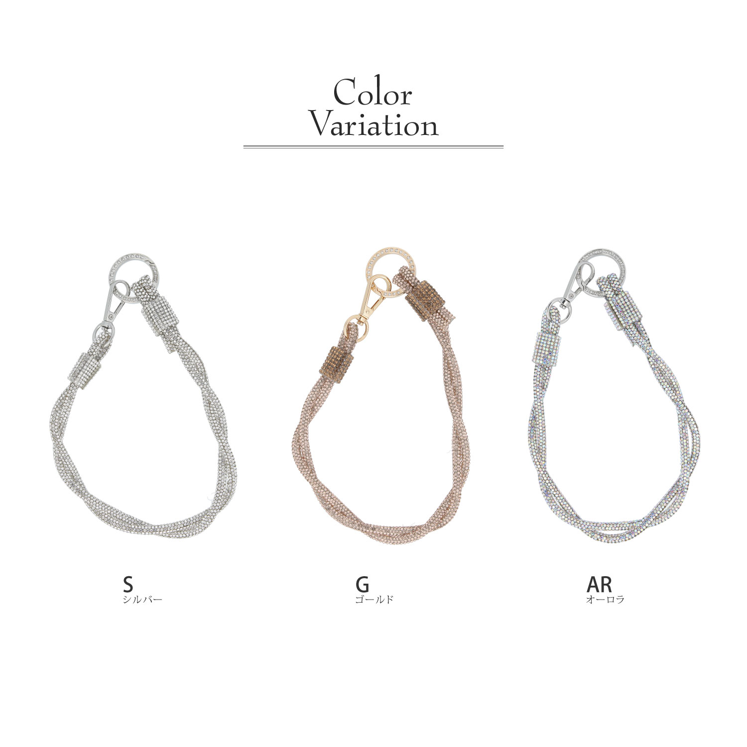 キラキラクリスタルコード、キラキラクリスタルアイロンシート、キラキラカラビナを使用した、シンプルなデザインながら、華やかさのあるバッグチャームです。