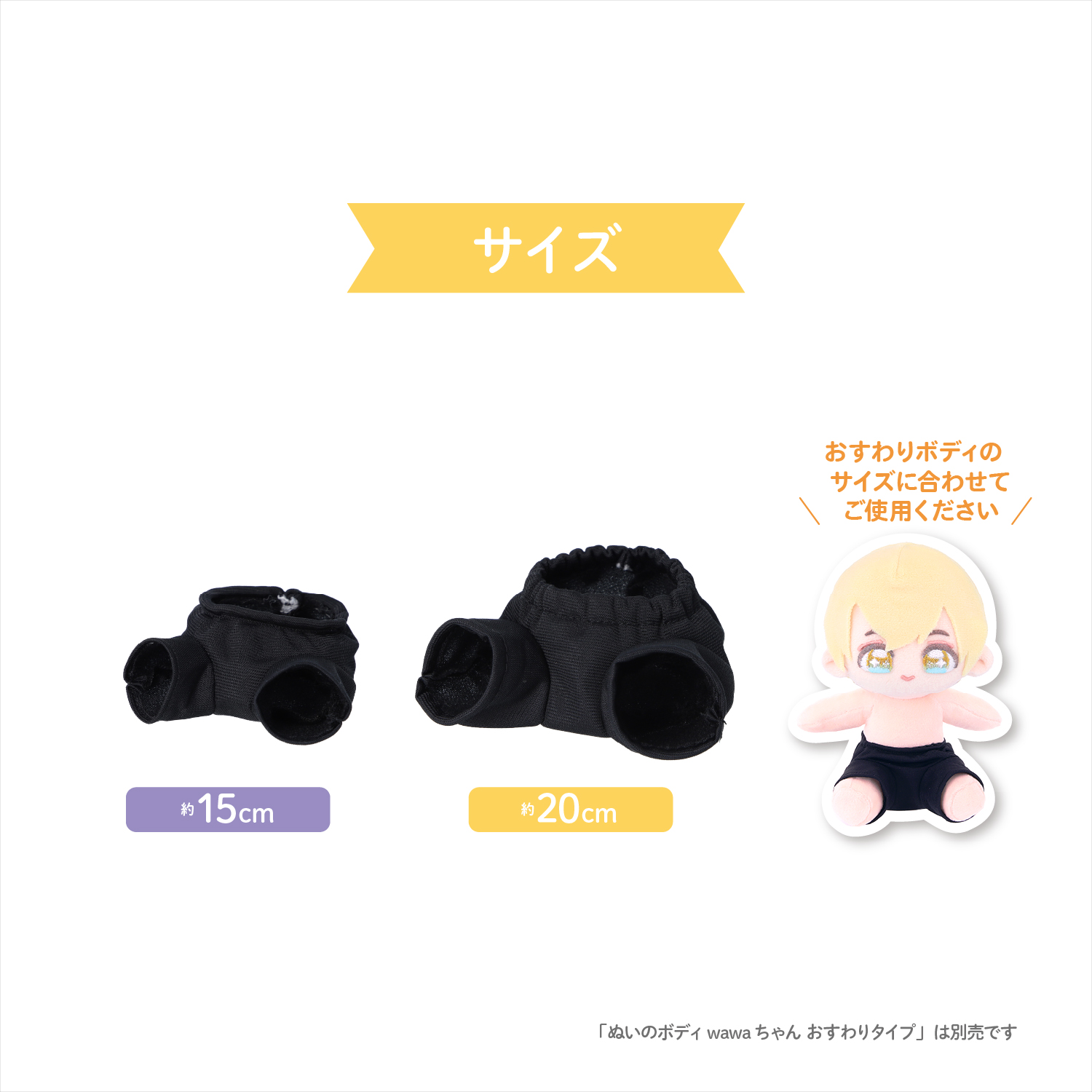 「ぬいのボディwawaちゃん」からおすわりタイプが仲間入り♪ぺたっと座ったポーズが可愛く、お部屋に飾ったりお外で撮影したりと楽しめます♪