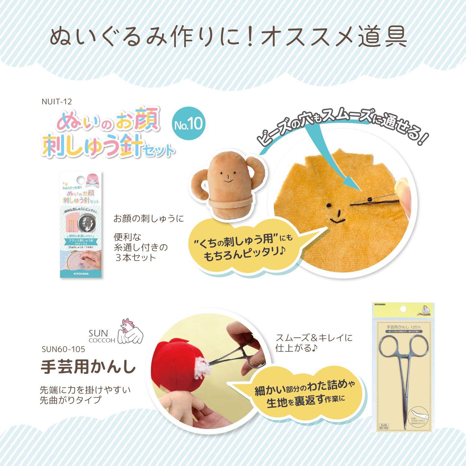てのひらサイズのぬいぐるみが手づくりできるキットです。