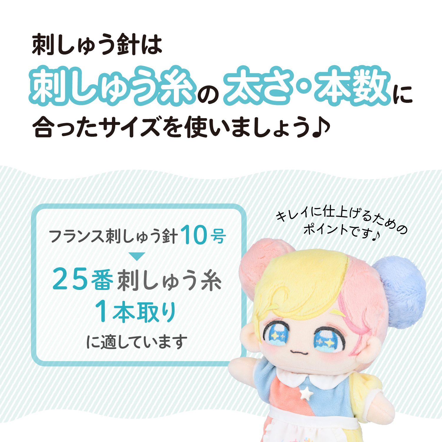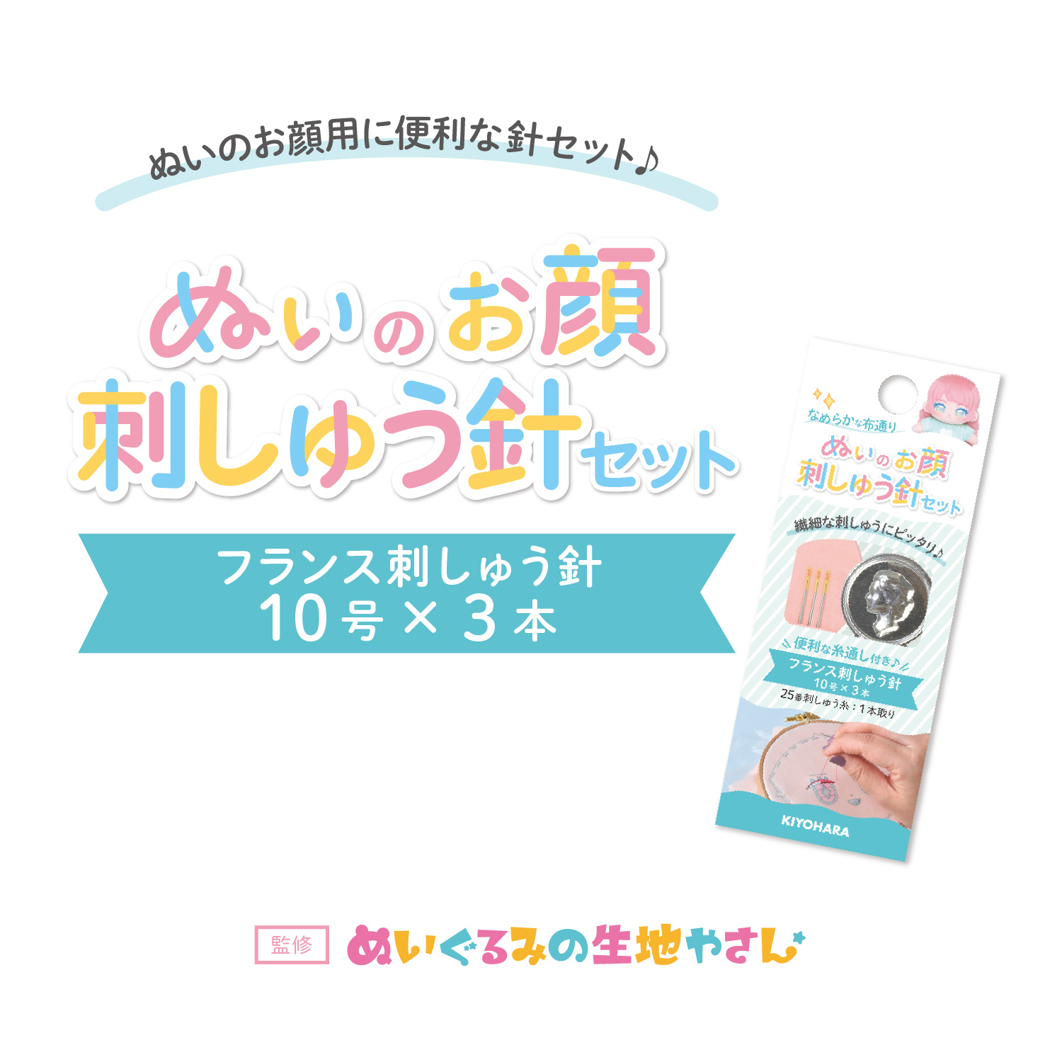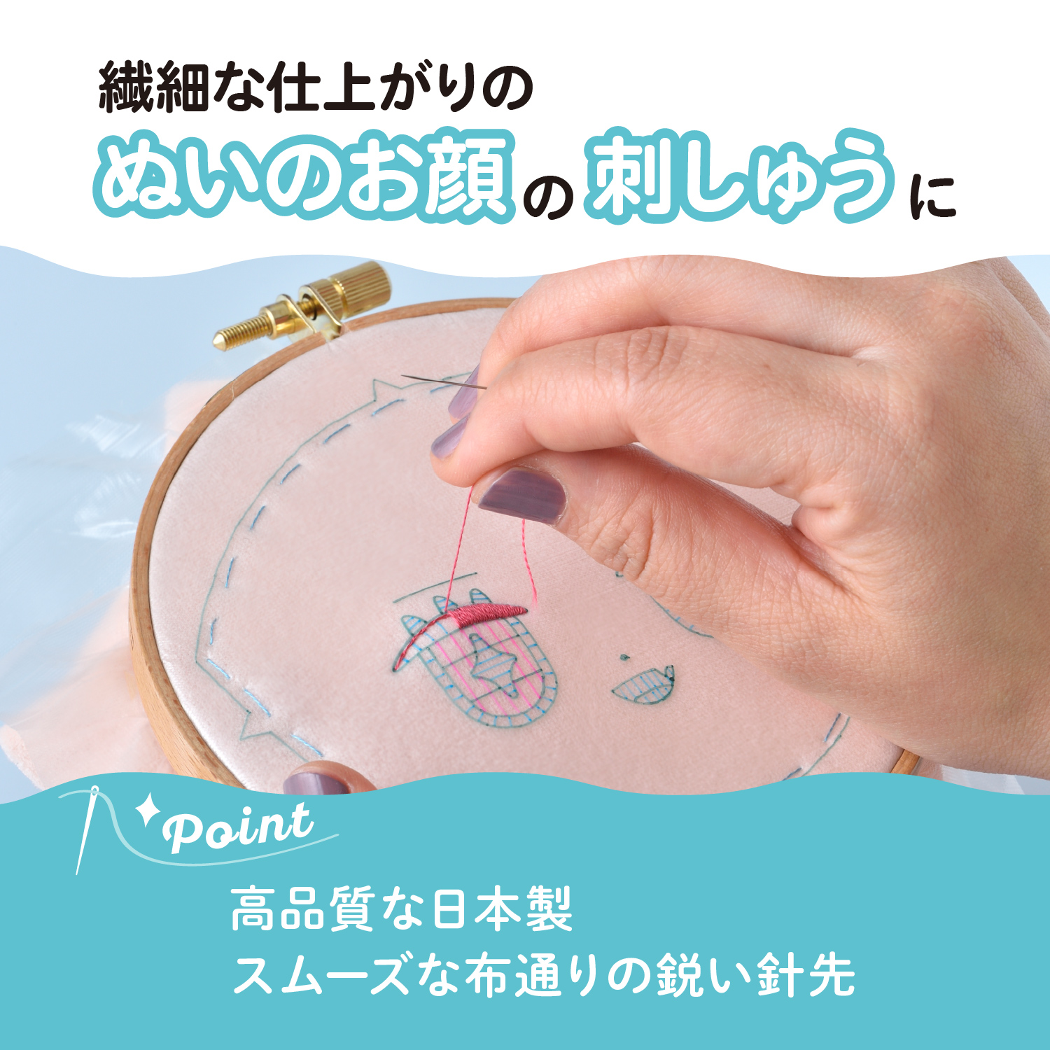 ぬいのお顔の刺しゅうに最適、10号の刺しゅう針セット。25番刺しゅう糸の1本取りに適した針です。日本製でなめらかな刺しごこち。