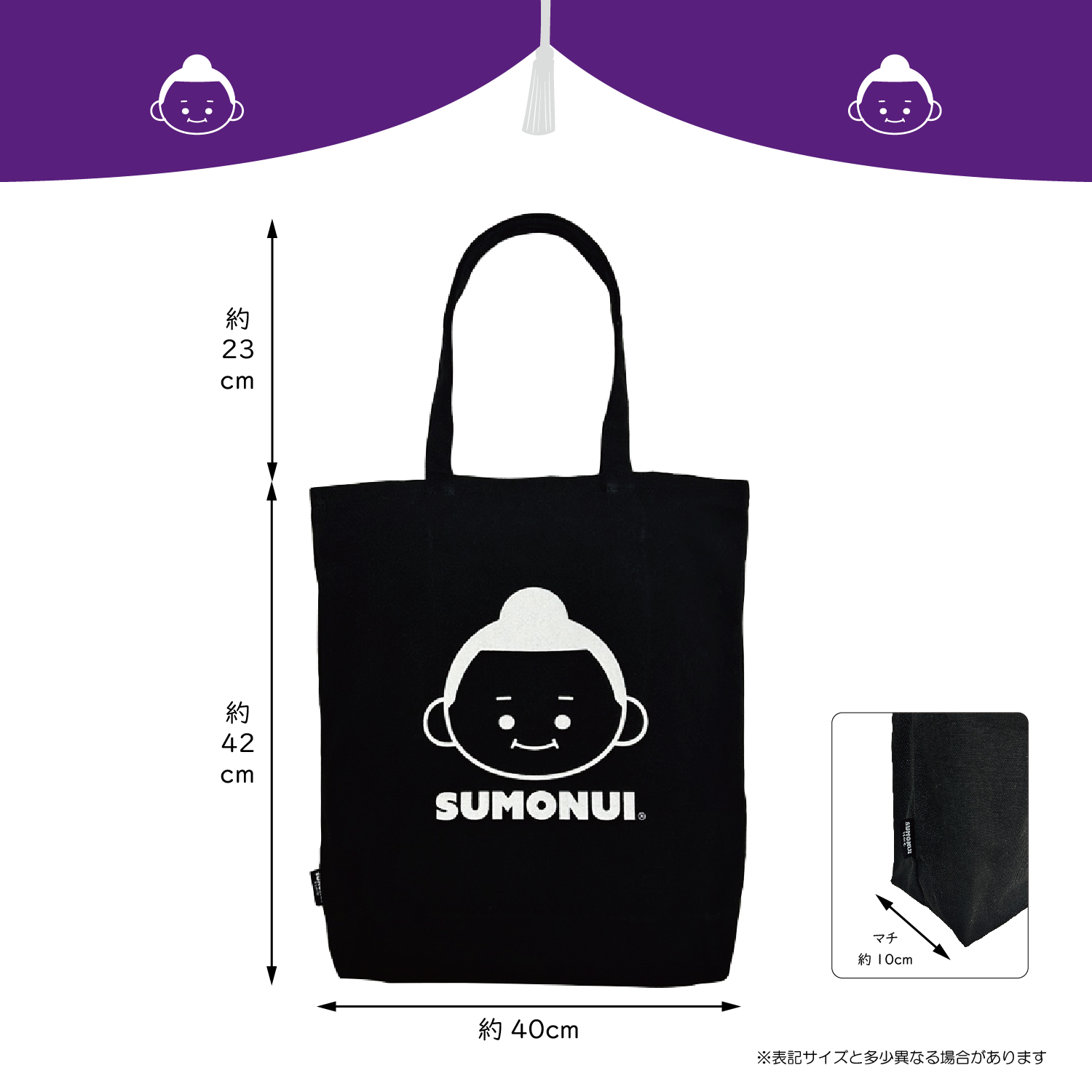 すもぬいキャラクターがプリントされた使いやすいサイズのトートバッグです。