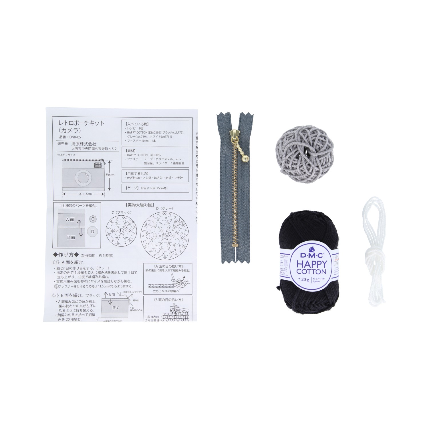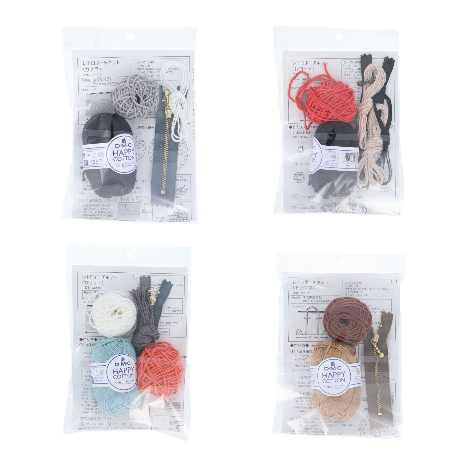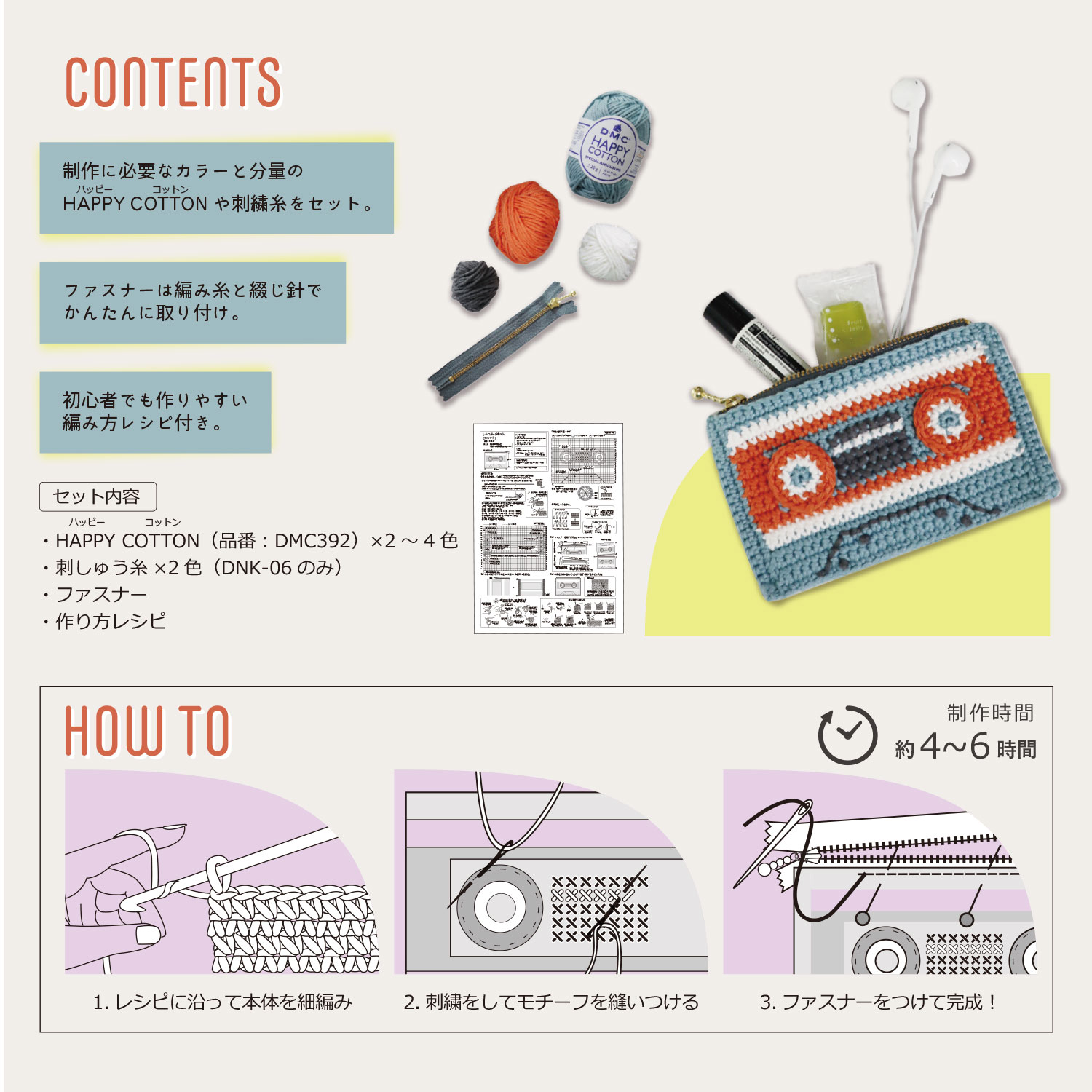 ポップなカラーで人気のディー・エム・シーHAPPY COTTONでつくる、かぎ針の編み物キットです。