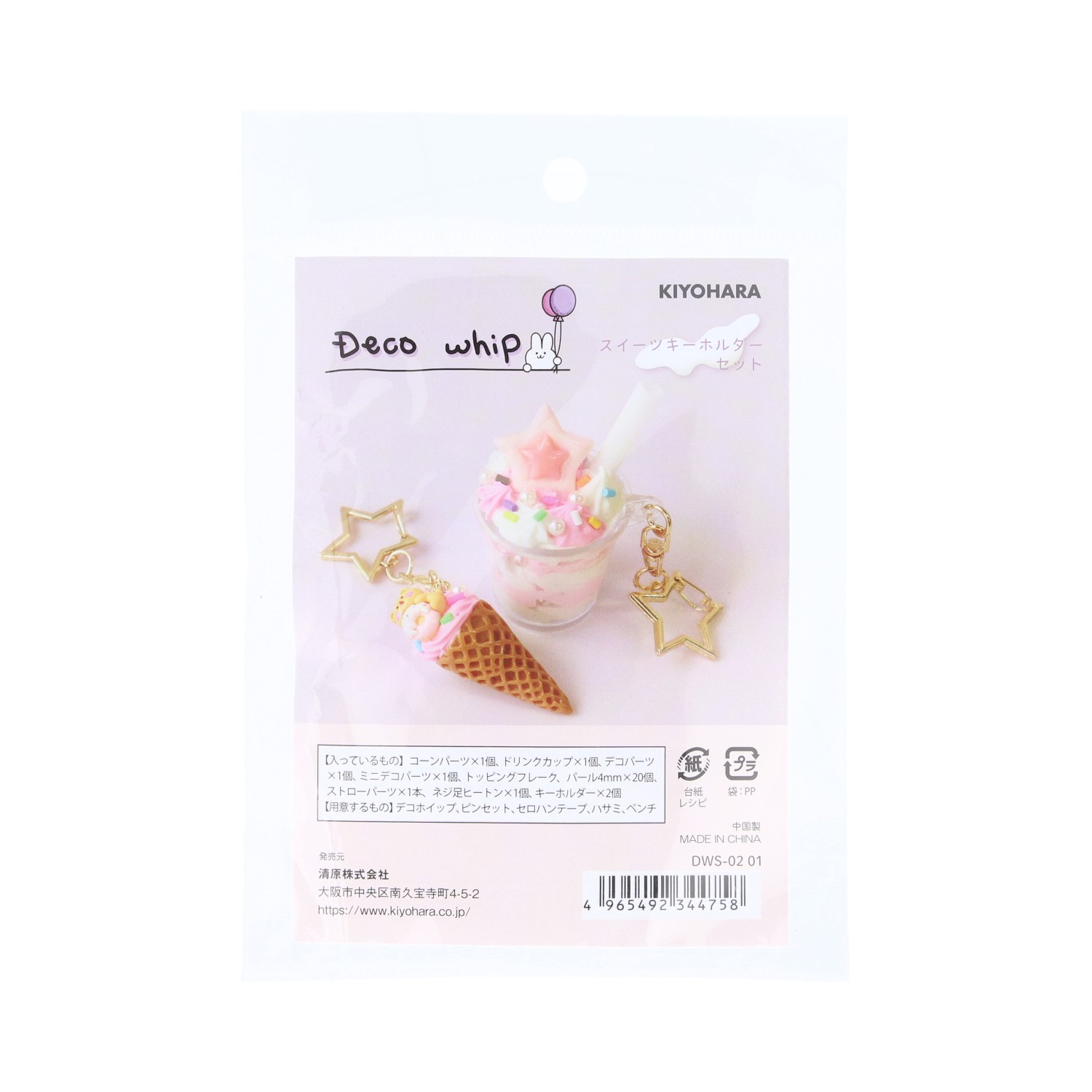 デコホイップを手軽に楽しめる、ベースとパーツのセットです。お好みのカラーのデコホイップと組み合わせて、かわいいスイーツカップやキーホルダーが制作できます。