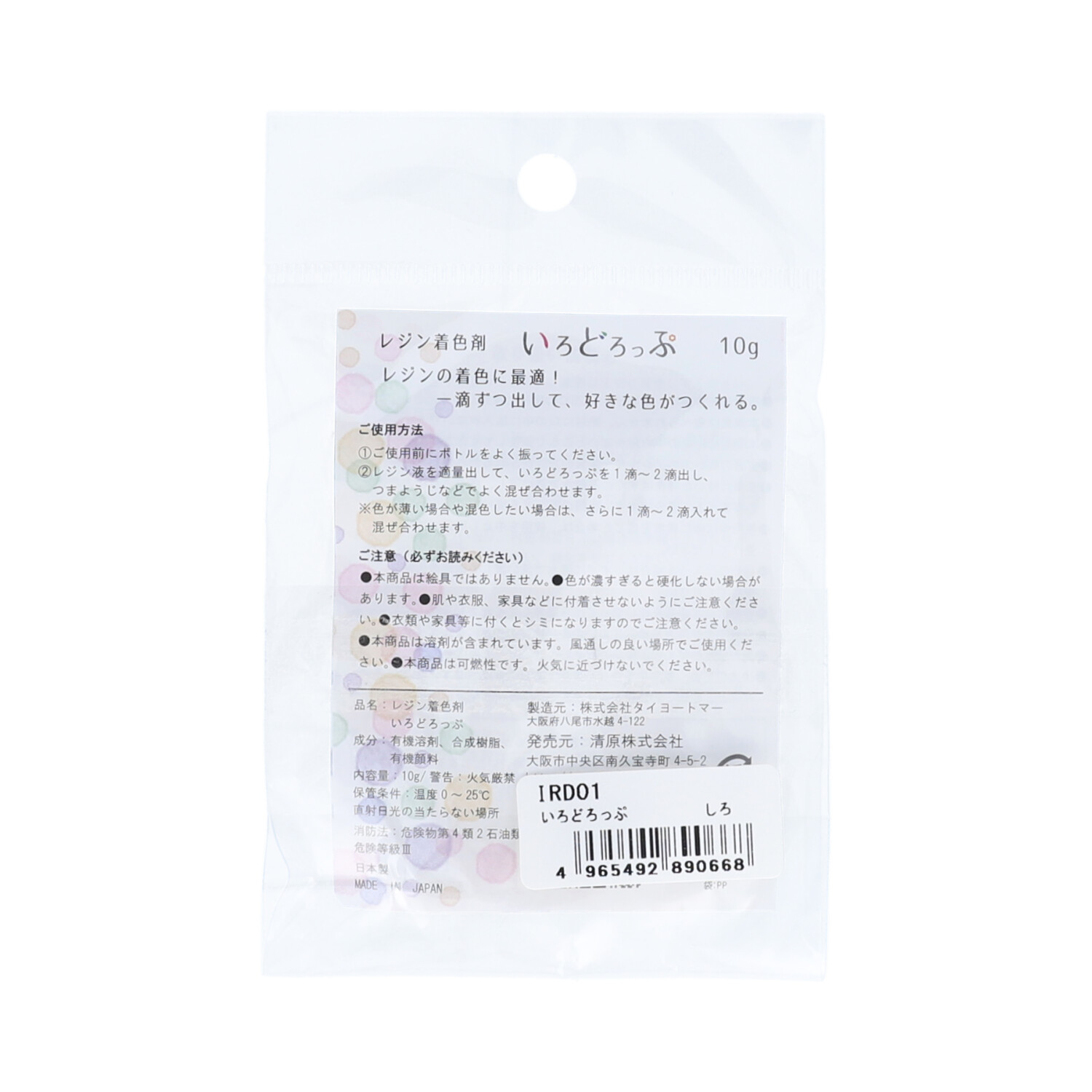 カラフルな作品を作るのに便利なレジン用着色剤「いろどろっぷ」です。