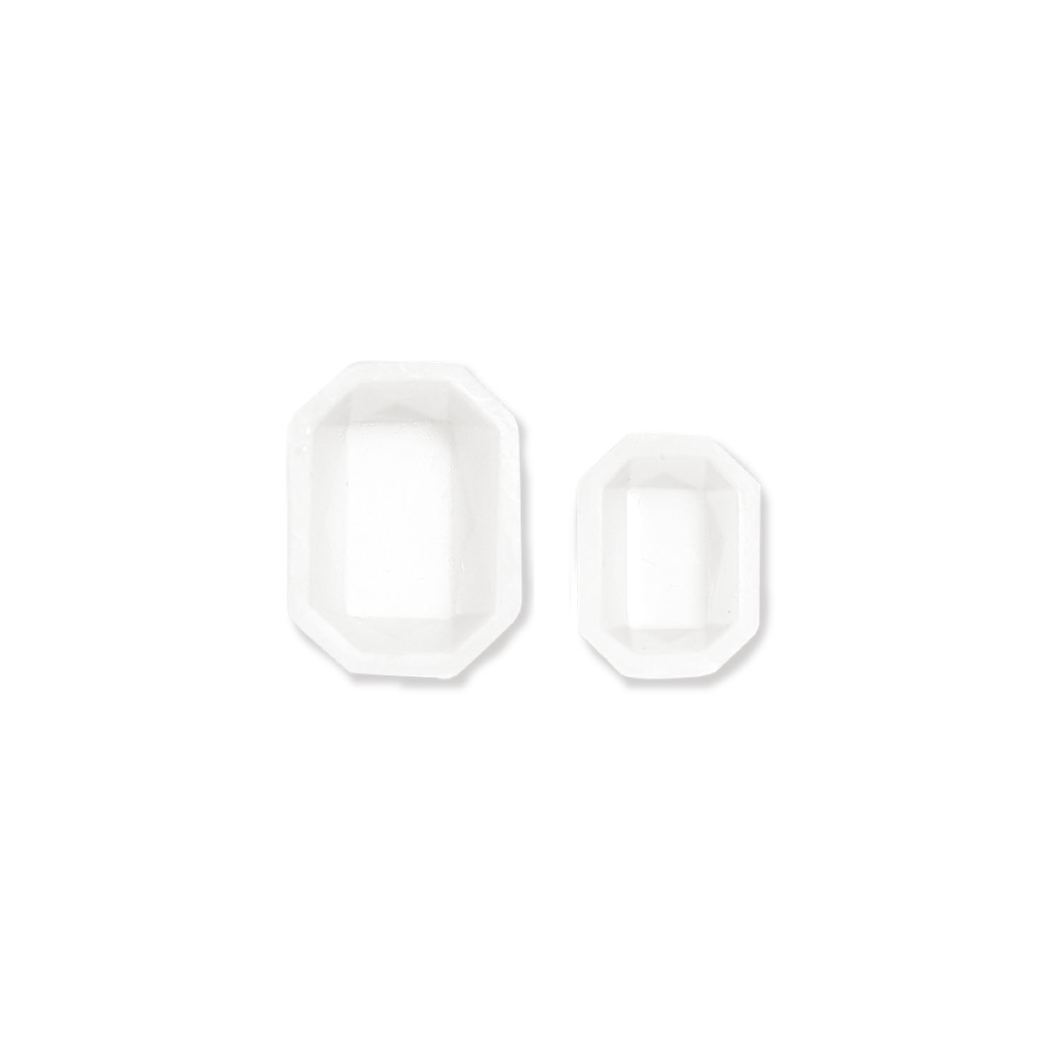 レジン液を流し込んで、立体的なビジューパーツを制作する型です。別売のシリコンモールド用台座と組み合わせて使用します。それぞれ2種類の大きさがセットになっています。