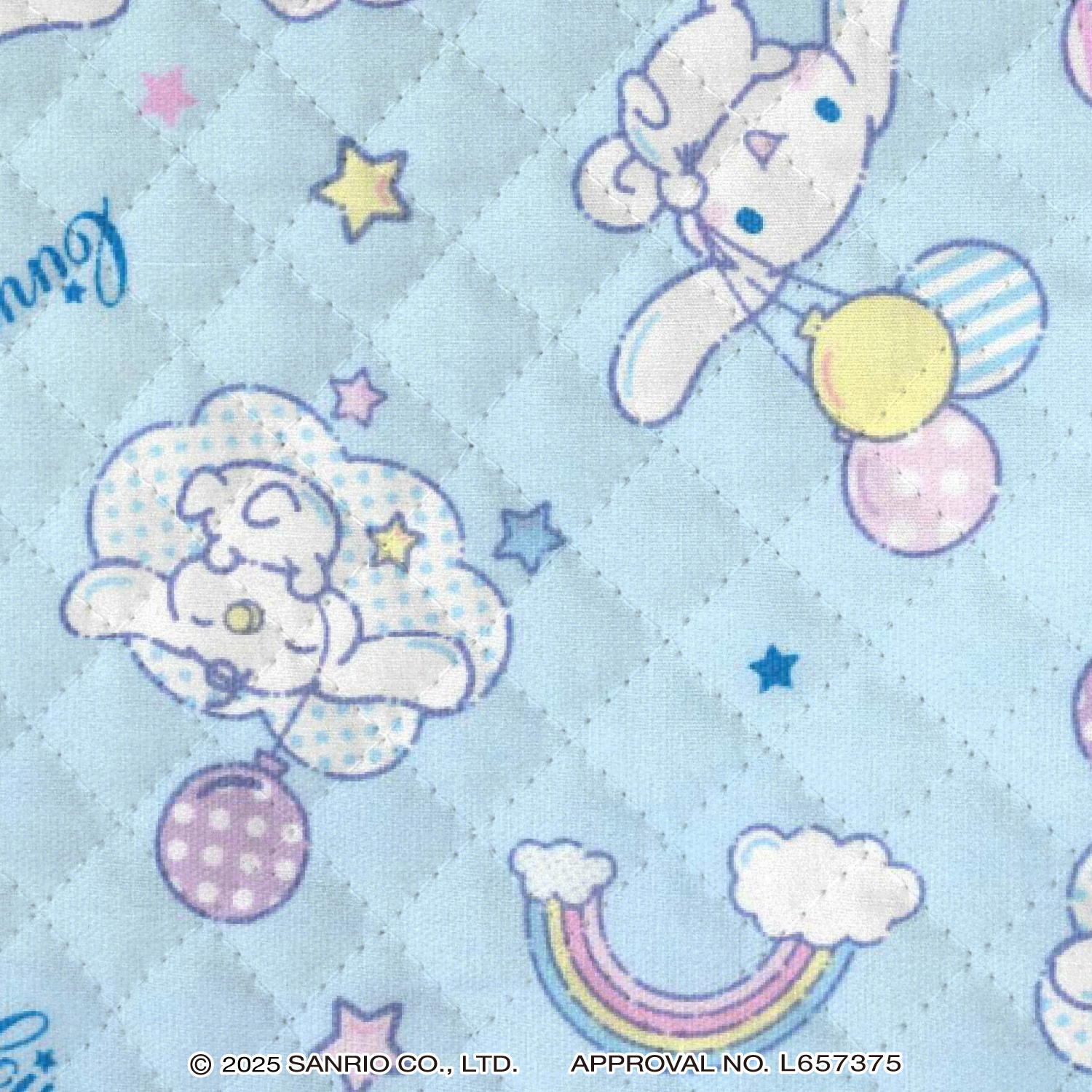 かわいいバルーンを持ったシナモロールと虹の柄のオックス生地です。