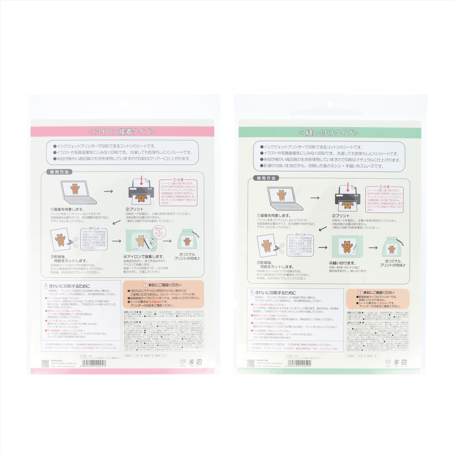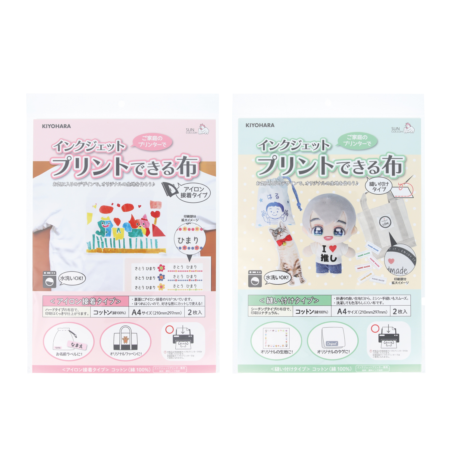 イラストや写真画像をにじみなく印刷でき、洗濯しても色落ちしにくいシートです。