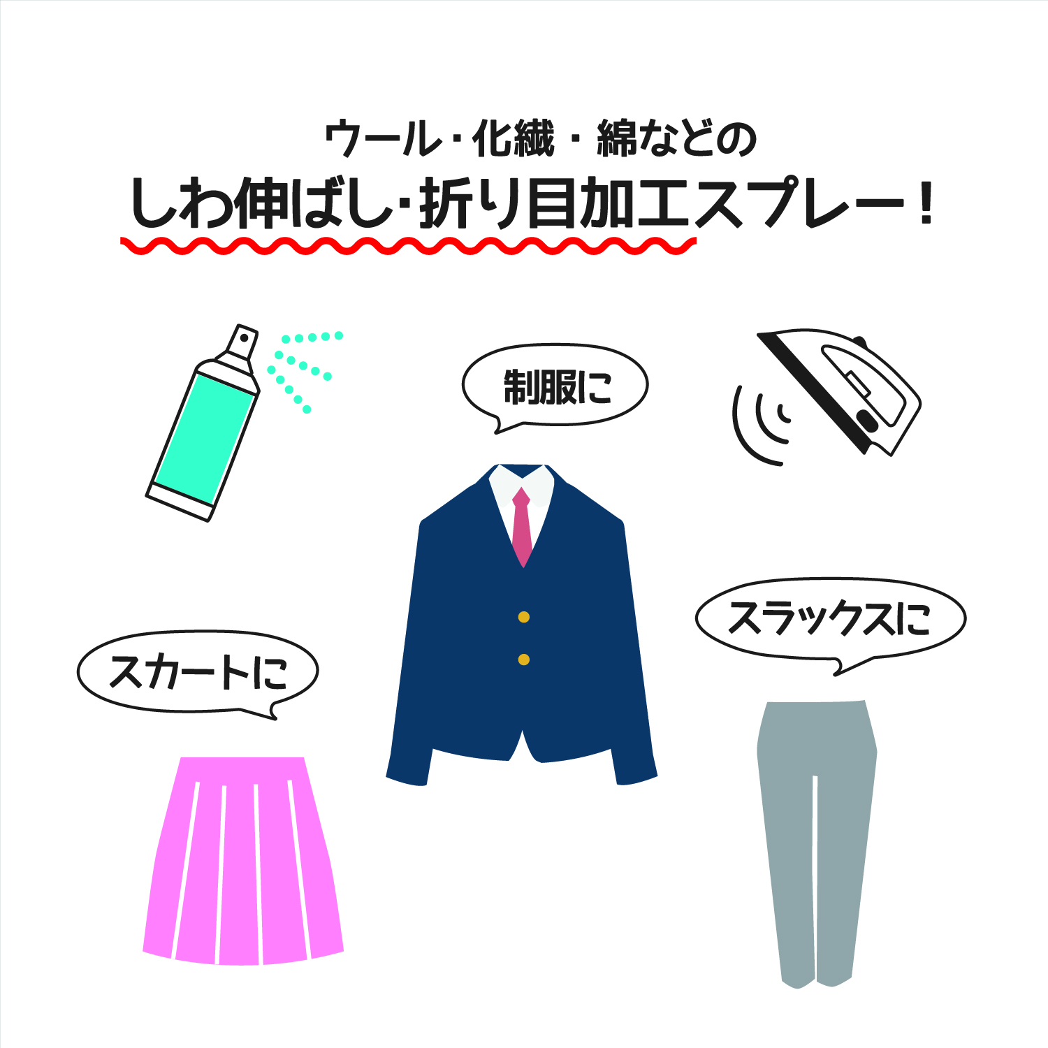 ウール・化繊・綿などのしわ伸ばし・折り目加工スプレー「仕上げキレイ」