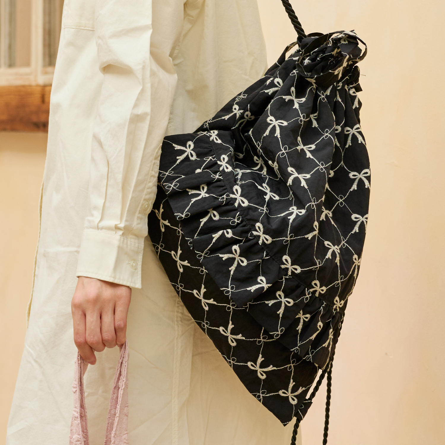 おしゃれなナイロンワッシャーに流行りのリボン柄を刺繍した今までにない生地です。